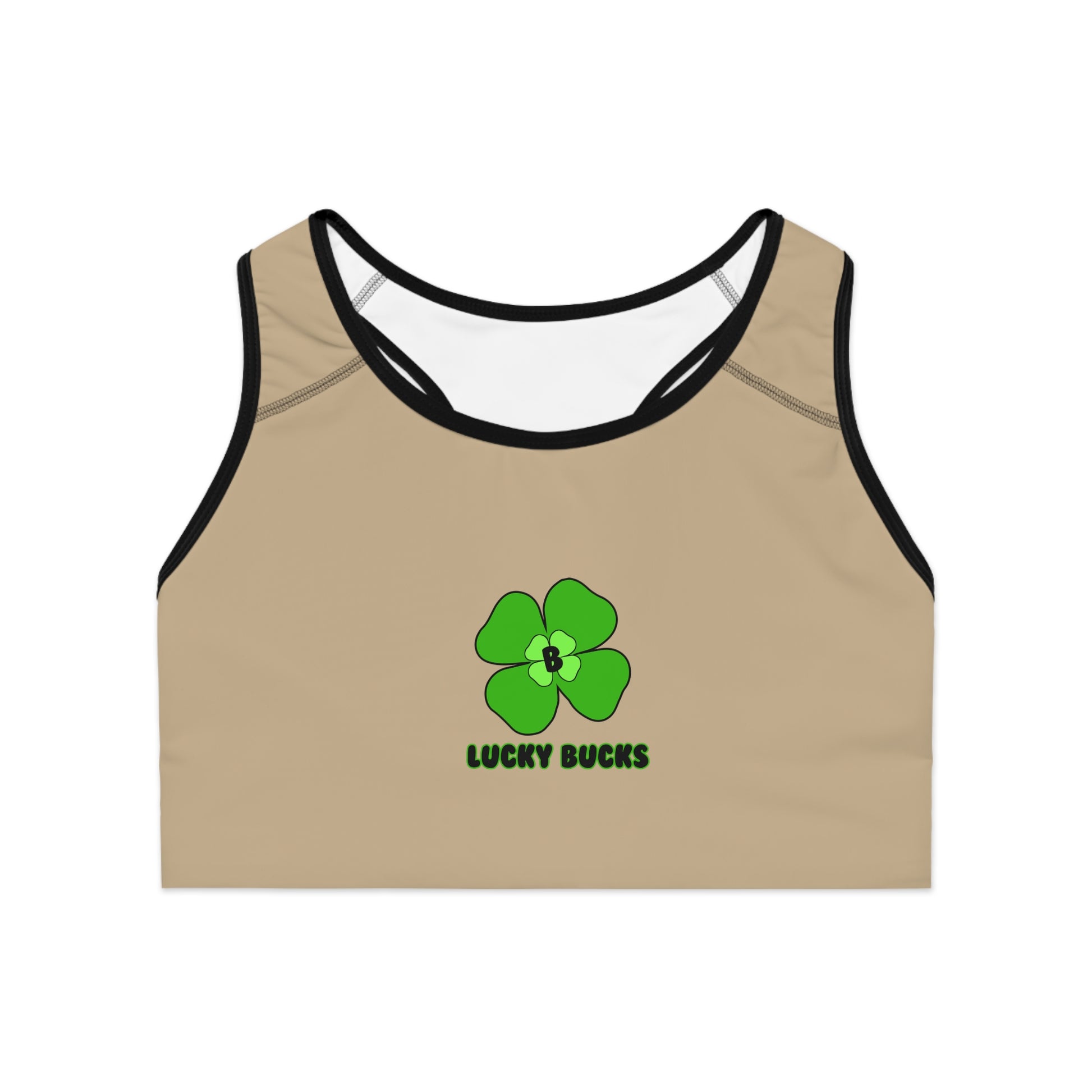 Lucky Bucks Sports Bra - St. Patrick's Day Activewear, Green Clover Design, Workout Gear, Fitness Top, Gym Bra, Cheerful Apparel
