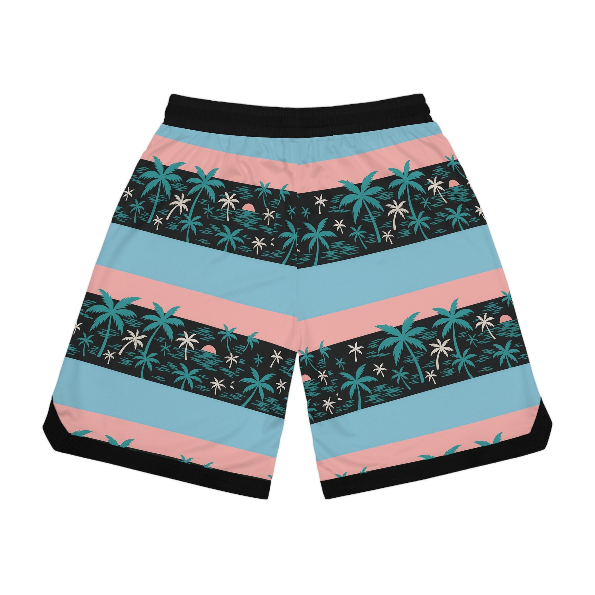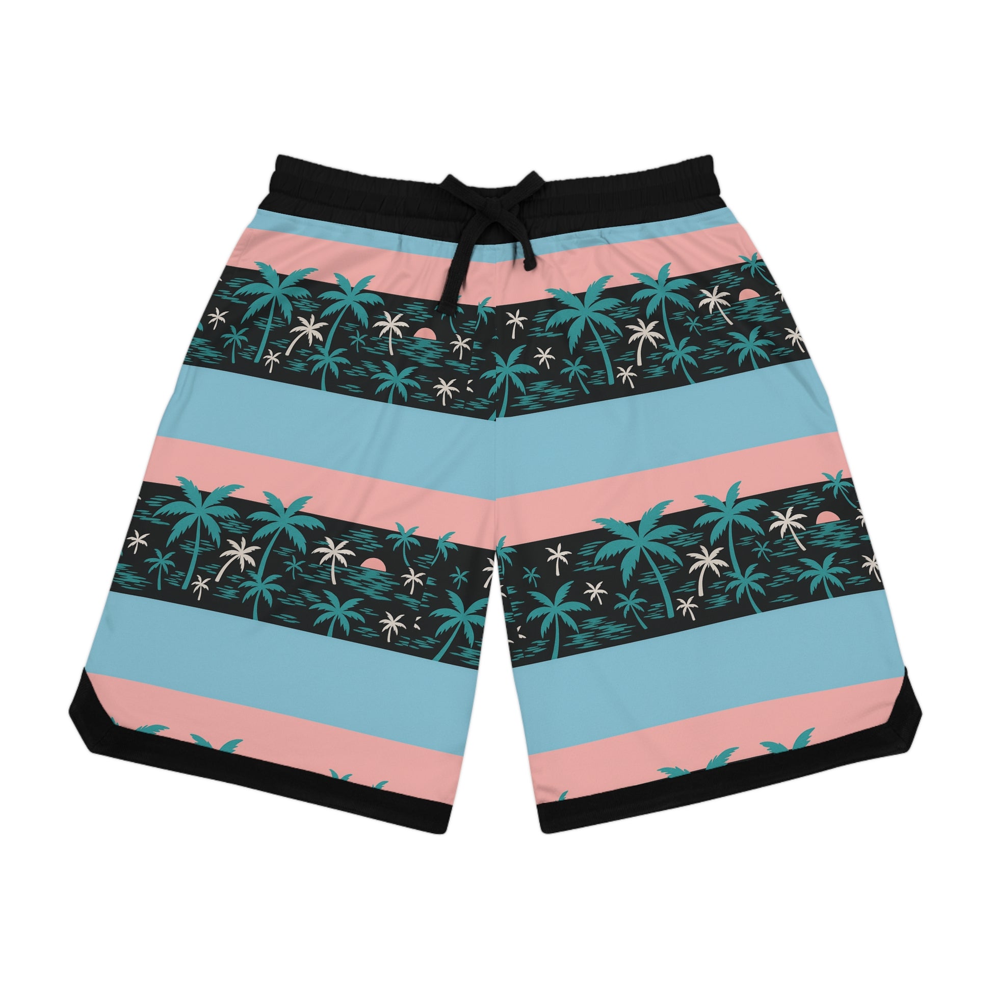Introducing our stylish Basketball Rib Shorts, designed for those who love both comfort and flair. Crafted from 100% polyester, these shorts are not only durable but also quick-drying, making them perfect for any active lifestyle. The moisture-wicking material keeps you cool and comfortable, whether you're on the court or chilling with friends. The vibrant design, featuring a playful palm pattern, brings a fresh vibe to your summer wardrobe, making these shorts ideal for hot days at the beach or casual outings. With two customizable side-entry pockets, you can keep your essentials handy while on the go. Suitable for basketball players, gym enthusiasts, and casual wearers alike, these shorts are perfect for summer fun, sporting events, barbecues, and vacations. Embrace a laid-back atmosphere while staying active and stylish, a great addition for those who enjoy sports and outdoor activities.